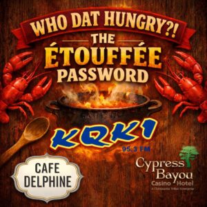 KQKI 95.3 FM and Cafe Delphine inside Cypress Bayou Casino & Hotel are giving away a GALLON of étouffée!Here’s how it works: