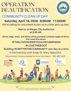 The event will take place on Saturday, April 18, 2026, from 8:00 a.m. to 10:00 a.m. at the Morgan City Auditorium. Volunteers of all ages are encouraged to attend and take part in improving local neighborhoods, one block at a time.